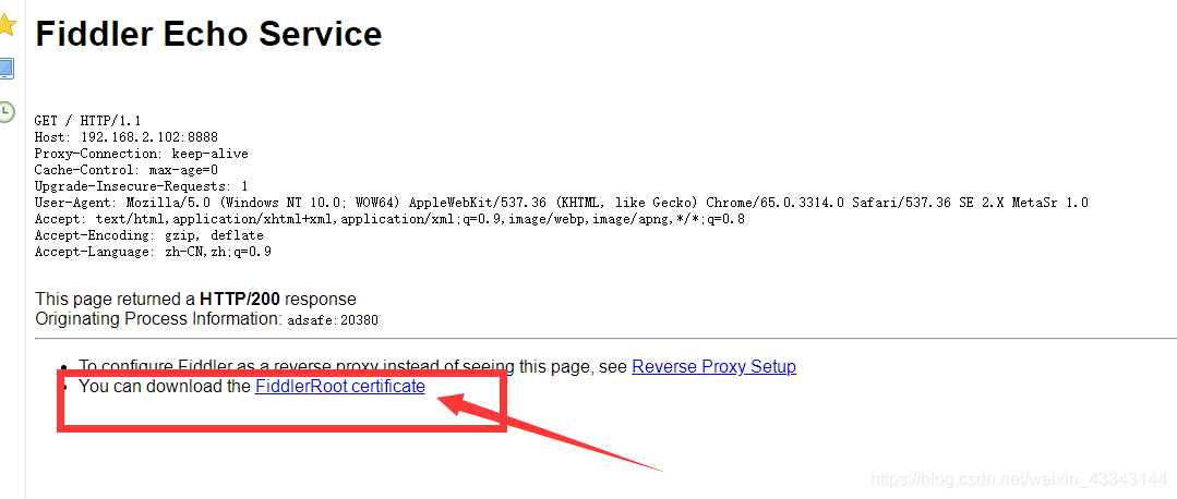 第一步:只要你在本地电脑可以访问ip地址:端口8888【如:】可以访问,那么在模拟器就直接可以访问,然后点击安装fiddler证书!